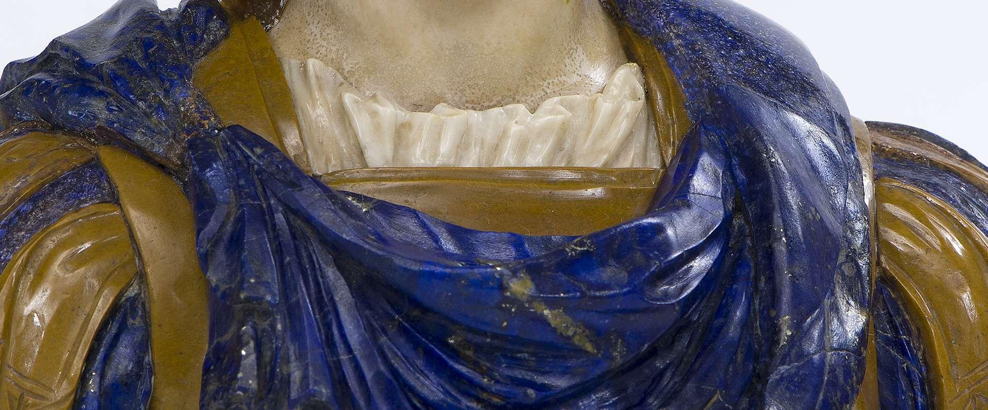In particolare, il busto di San Nazaro presentava talune irregolarità e sfalsamenti fra le parti lapidee, riferibili ad un pregresso incollaggio seguito alla rottura del busto in più pezzi; oltre alla presenza di stuccature malamente condotte, la sua superficie era inoltre offuscata da diffusi depositi, dovuti all’alterazione di cere e protettivi di natura coerente ed incoerente. Pertanto l’intervento è consistito nella verifica accurata della stabilità delle singole porzioni lapidee e nella messa a punto di un idoneo sistema di pulitura e d’integrazione. Infatti, sotto controllo del microscopio sono state eliminate le macchie, i depositi e le vecchie integrazioni ormai virate cromaticamente; in una fase successiva si è proceduto alla riconfigurazione volumetrica delle lacune ed al relativo ritocco pittorico, eseguito con la tecnica de puntinato. Nelle aree integrate l’effetto di lucentezza proprio delle contigue pietre dure è stato ottenuto mediante lucidatura della superficie con punte d’agata in modo da raccordare l’indice di rifrazione della luce alle zone originali.