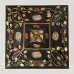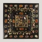Tali opere mostravano una cospicua presenza di depositi coerenti su tutte le superfici ed un effetto maculato in particolare sulle superfici lignee, imputabile alla disomogenea opacizzazione del trattamento protettivo. Fessure e disconnessioni interessavano le porzioni lignee presso gli spigoli delle cassette, nonché i castoni, che necessitavano di un accurato intervento di fissaggio. Alcune applicazioni metalliche erano disancorate dalla propria sede, mentre si riscontravano altre criticità sulle lamine in tartaruga, sugli specchi e sui rivestimenti in tessuto e carta. Per quanto concerne i fruttini in pietra dura, essi erano in gran parte lacunosi o instabili o completamente disgiunti dal proprio alloggiamento; ben quindici elementi, infatti, staccatisi nel tempo dal supporto e tutti privi del perno di ancoraggio, erano pervenuti in posizione erratica e attendevano di essere ricontestualizzati.