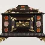 In via prioritaria, per ciascun cofanetto è stato redatto un accurato rilievo grafico con individuazione di tutte le aree d’intervento. Dopo aver catalogato i fruttini in pietra dura, ne è stata verificata la corrispondenza fra gli elementi erratici e le sedi vacanti, pervenendo alla collocazione originaria. Essi sono stati poi ricongiunti alla rispettiva sede mediante ancoraggio meccanico e adesivo reversibile; laddove il perno risultava mancante, sono stati realizzati nuovi perni in ottone. Gli altri fruttini instabili sono stati opportunamente bloccati al supporto, così come tutti i numerosi castoni in via di distacco. Al consolidamento delle porzioni lignee angolari sono seguite le impegnative operazioni di pulitura, volte ad asportare le tracce dei collanti ormai cristallizzati e dei vecchi protettivi opacizzati. Al termine dell’intervento, i cofanetti hanno recuperato la piena leggibilità delle proprie qualità estetiche, connesse al sapiente abbinamento di materiali nobili, prima gravemente offuscati dal degrado.
