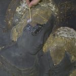 L’intervento di restauro è stato finalizzato al recupero della cromia originaria bianco e oro e pertanto si è concentrata sulla complessa pulitura volta alla rimozione dello spesso strato di ridipintura nera.