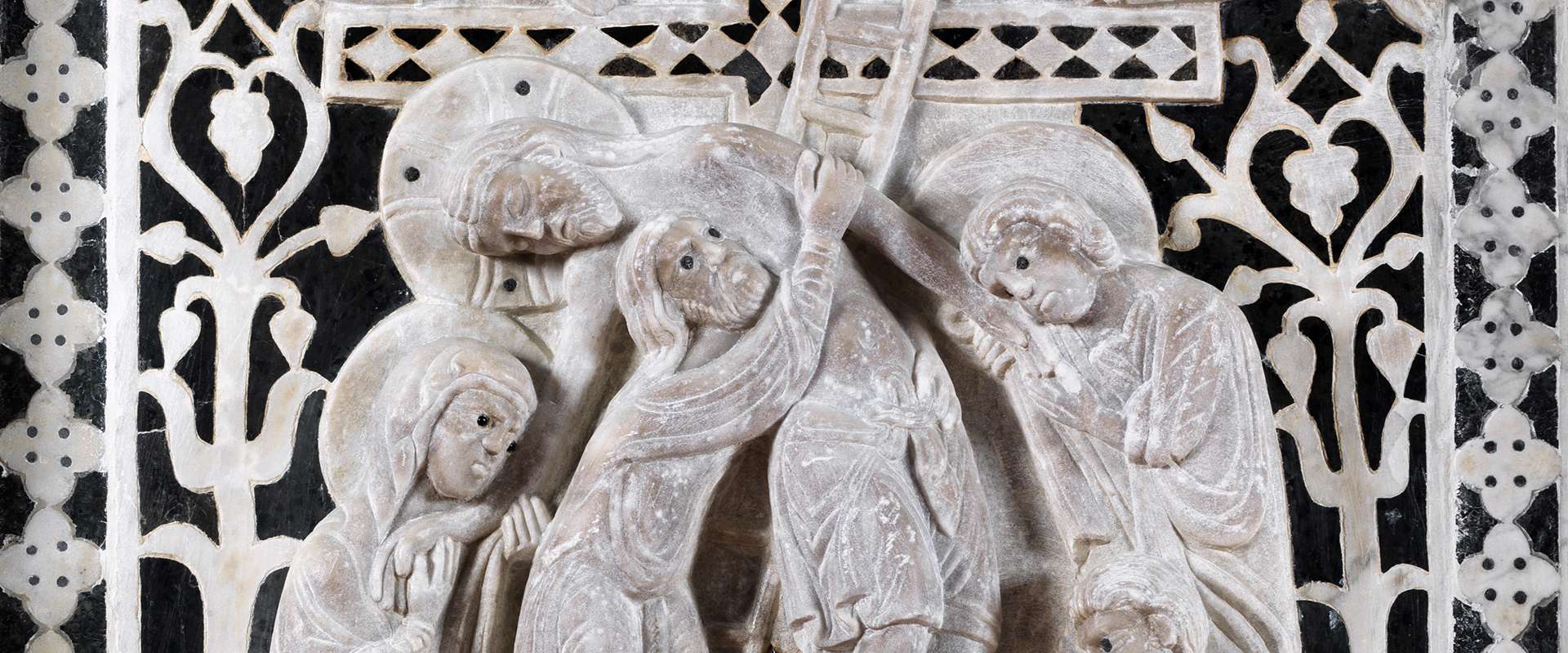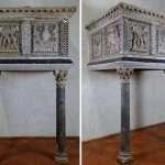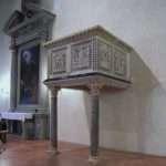 Il pulpito di San Leonardo in Arcetri, risalente alla seconda metà del XII secolo, costituisce un’unicum in ambito fiorentino per la presenza di scene figurate assimilate alla tradizione toscana delle decorazioni ad intarsio bianco nero che valorizzano rilievi ed elementi architettonici. L’opera che oggi vediamo, proveniente dalla Chiesa di San Pier Scheraggio, non può spiegarsi senza far riferimento alle complesse vicende che ne hanno segnato l’esistenza. Le rimanenti parti del pulpito originario, conservate a San Pier Scheraggio, furono ricomposte, nel 1782, nella chiesa di San Leonardo in Arcetri, con l’aggiunta d’elementi settecenteschi in gesso e in Pietra Serena. Nel 1921, in occasione del Secentenario della morte di Dante, il pulpito fu nuovamente spostato all’interno della chiesa di San Leonardo e rimontato con nuovi marmi di sostituzione degli elementi settecenteschi, realizzati dalle maestranze dell’Opificio delle Pietre Dure su progetto dell’architetto Giuseppe Castellucci.