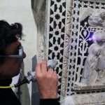 In base alle analisi effettuate e all’osservazione dei fenomeni di degrado presenti, per prima cosa si è proceduto alla rimozione delle malte cementizie che fungevano da stuccatura e sigillatura e delle malte a gesso che, per lo più, avevano perso la pellicola pittorica soprastante. Abbiamo considerato che dopo la rimozione, una nostra integrazione avrebbe non solo risanato la perdita d’immagine conferendo una lettura corretta della bicromia “bianco-nero, ma, avrebbe garantito una conservazione prolungata nel tempo del manufatto.